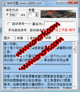 快乐抓图可以连续抓取窗口图片或屏幕图片的工具!甚至是窗口上的物件的图像都可以轻松得到!