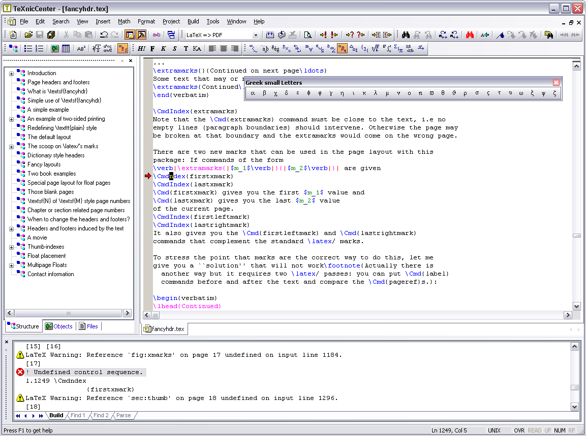 在每个保存操作,TeXnicCenter解析您的项目所有的LaTeX,通过输入或\ \助理包括包括直接或间接的项目的主要文件。 解析结果由不同的子视图为您提供: