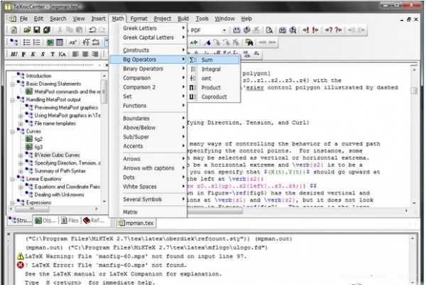构建灵活,完全可配置的系统可以很容易为你建立你使用任何你喜欢的目标格式文件的输出。的可能性定义为需要尽可能多的输出配置,使您能够快速改变即DVI,PDF或PS输出之间。直接支持为MakeIndex及BibTeX和灵活的后置处理器的机制,可以很容易地建立你能想到的任何工具链。开始构建您的文档,只需要一键,或选择相关的菜单项。TeXnicCenter将解析的LaTeX的日志输出和亮点框错误,警告和错误的。只需鼠标点击就可以跳转到你的源文本的有关立场。