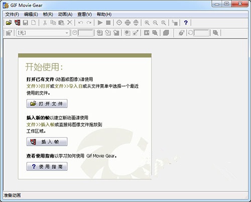 1、打开GIF Movie Gear之后我们看到的主界面上有“打开”以及“插入帧”的按钮