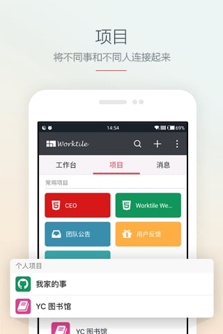 Worktile 个人版以协作为核心,重协作轻管理,通过任务驱动的方式来实现协作,灵活的模块化和充足的自定义权限使得个人版变得灵活全能。