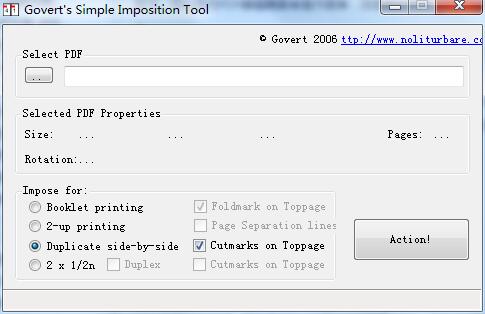 首先来选择文件,打开程序界面,单击Select PDF栏中“...”按钮,在弹出的“打开”对话框中,选中要打印装订的PDF文档里单击击“打开”按钮,文档路径及名称便显示在界面中,同时在Selected PDF Properties栏中还显示出文档页面的原始大小、文档的总页码等信息!