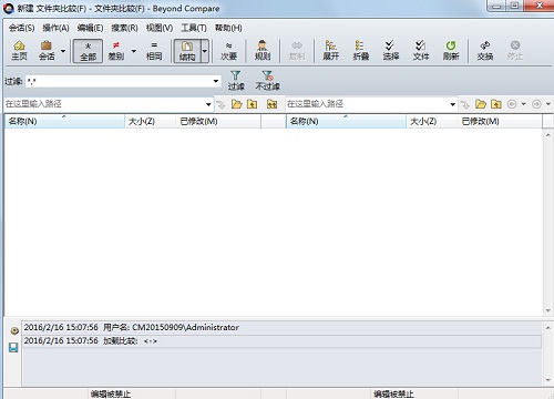 1、打开Beyond Compare软件,进入到文件夹合并会话操作界面。