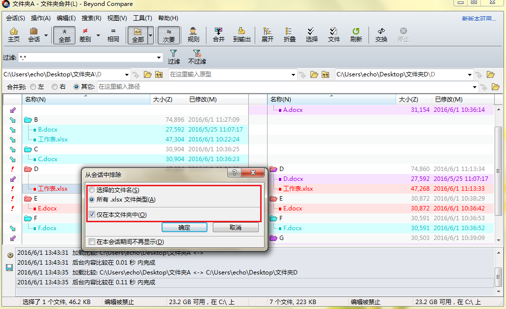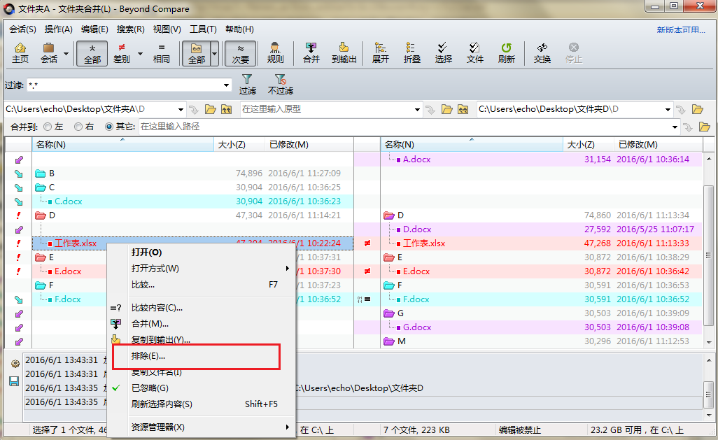 文件夹合并Beyond Compare怎么排除表格?