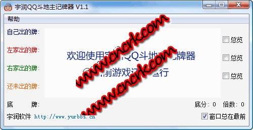 宇润QQ斗地主记牌器 V1.1 简体中文绿色免费版 宇润QQ斗地主记牌器是一款QQ游戏斗地主辅助工具。