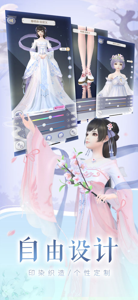 追求服装材质真实还原,丝绸、锦缎、棉麻、轻纱、皮革、绒毛......多种服装面料在游戏中展示真实材质,360°动态展示下,匹配拟真动态质感,效果更显逼真。以多层半透明层染技术,根据服饰材质物理属性强化表面光线延伸效果,实现光影、立体、动作、特效的完美结合,丝毫必现的立体刺绣、星河映照下水袖上的鎏光、裙摆飞扬的飘逸等,都跨越式提升了游戏体验。独具一格的服饰自定义系统,拥有自由染色、印花、染布、剪裁等黑科技功能,实现随心私人高定,打造最具个人特色的视觉盛宴。