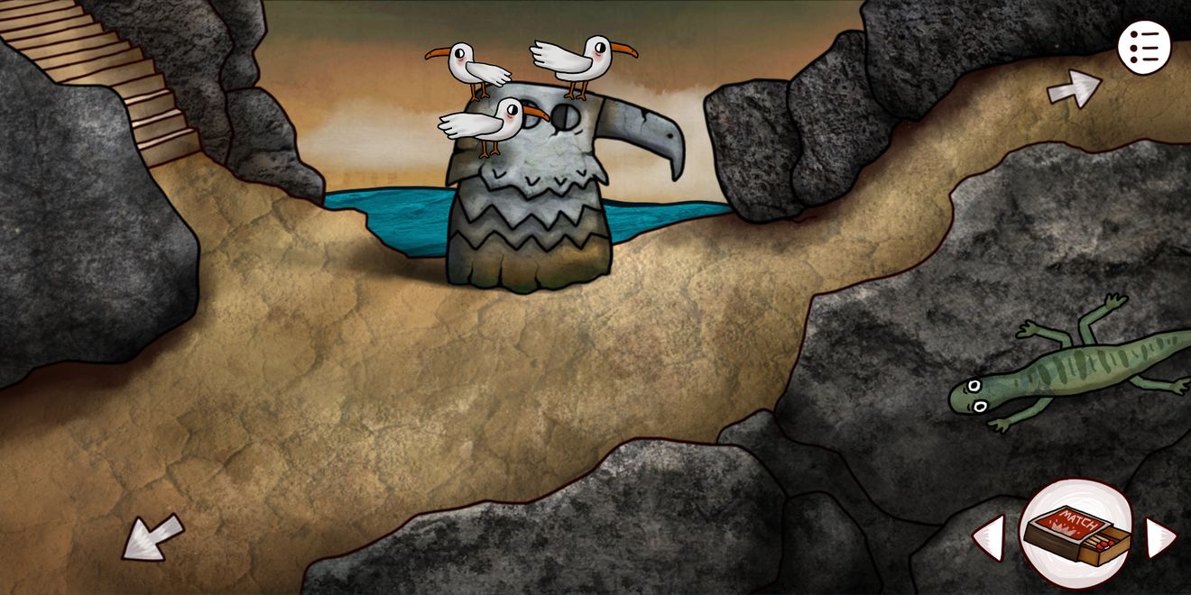 然后先点击三只鸟,等到鸟落到下方的石头上在点击蜥蜴,得到白色羽毛。