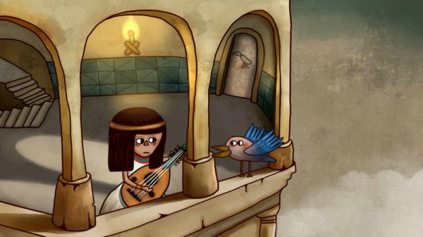 把鲁特琴交给公主,并把八音盒上的密码弹出来,吸引来蓝鸟。
