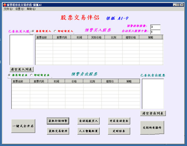 2、不知如何选股进行买或卖的用户:本软件默认设置的买卖策略,是自己编制的一套通达信公式预警策略,会筛选出上升通道趋势买卖点的股票进行自动买卖。