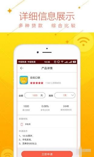 8、高效:贷款机构审核通过,资金分分钟到借款人银行卡上。