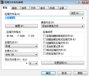 选择我们要组合的文件,选择添加按钮,弹出压缩对话框,如下图所示: