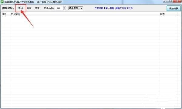 1、打开软件运行,点击添加按钮添加图片 批量转换jpg格式