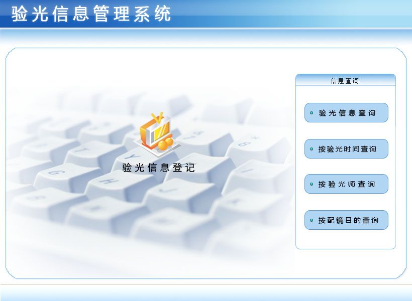 《验光信息管理系统》针对眼光医院或眼镜店开发的一款软件,主要功能为验光处方单的信息管理,包含功能有顾客资料、旧镜史、预备检查项目、眼光检查、外眼检查、眼压检查,以及信息的查询等功能。软件操作简单,易学、易用,界面设计简洁、美观其人性化的管理可以使您轻易上手,该软件将是您明智的选择。 《验光信息管理系统》包含验光处方单登记、验光信息查询、按验光时间查询、按验光师查询、按配镜目的查询。