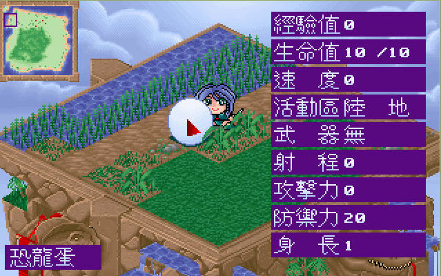 游戏刚开始的时候只有一人参战,而其它的恐龙都还未孵化,你要做的就是保护这些恐龙蛋并消灭敌人,如果恐龙蛋被对方咬破了到后面的帮手就会少了。如果成功保护恐龙蛋到了第二关恐龙就会孵化,随著战斗的展开,恐龙会进化而变得厉害,而主角也会学会各种高科技的招式,游戏中没有回复等其它道具,回血只能用休息来恢复,很考人的策略能力,恐龙们的眼神也相当隈琐(可爱?),恐龙被打的时候表情会很夸张,如果被打死而会灵魂出窍,或戴个光圈升天,或有个十字架插下来……