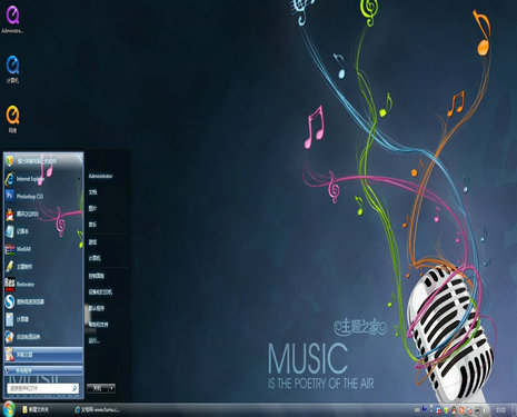 一款时尚简洁风格的win7主题下载,梦幻蓝色壁纸下的音乐旋律放佛带给我们无限心灵轻松的享受.每个跳动的音符感染我们不由自主的哼唱起来!~