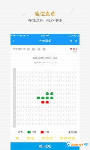 4、在线选座,在线充值,快捷购票,节省时间不排队