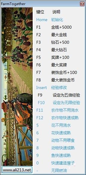 一起玩农场十九项修改器,具备无限金钱,无限砖石,无限奖牌,经验修改,无需浇水,无需喂食等十九项修改器功能,需要的玩家快来下载吧。【键位说明】