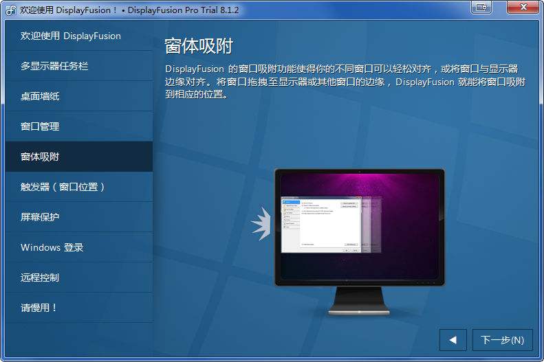 窗口吸附 – 窗口吸附功能使得不同窗口的相互对齐,或将窗口沿着显示器边缘放置变得更容易。只要将窗口拖拽到显示器或其他窗口的边缘附近,DisplayFusion 就会在原地对窗口进行吸附;