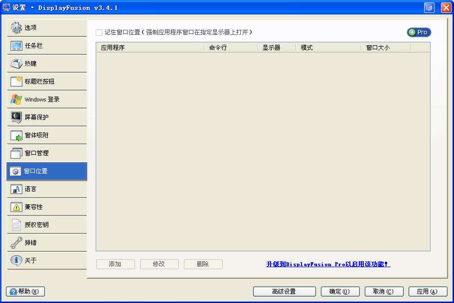 窗口位置 – 可供您指定所选程序要在哪个显示器上打开。您可以选择一个程序,然后使用下列不同设置对其进行定制。您还可以让所选程序的全部窗口在特定显示器上打开,或只设置第一个窗口的打开位置;