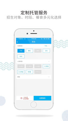 根据小孩情况,自主定制托管服务,包括托管时段(午托、晚托,或日托)、小孩托管年龄、是否需要餐食等。