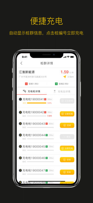 劲桩可实现快速找桩、智能导航、扫码充电、实时查看、在线支付、交易记录、打印小票、充电停车免费、账号管理等一站式充电服务,全面满足用户各方面需求,为用户提供更智能、更便捷的充电服务