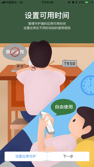设置可用时间:管理守护端的应用可用时间,设置应用在不同时间段的使用规则。