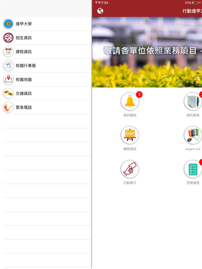 行动逢甲Beta版 『行动逢甲』是由逢甲大学信息处所开发,目的是让大众可以更方便、更即时的了解逢甲大学的*消息与活动。逢甲的师生更可以透过本系统来操作部分的校务系统。 功能特色:- 校园讯息:提供使用者取得校园各单位相关讯息,并可以将你关注的讯息分享到社群网站。行动逢甲苹果版