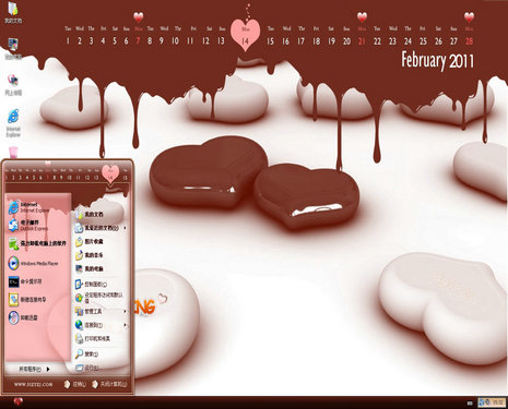 情人节日历主题是一款巧克力甜蜜爱情电脑桌面.2011情人节将至,不少年轻人已经开始准备节日礼物,送给心爱的人,趁着节日之际,将这款温馨浪漫的情人节主题礼物送给天下所有情侣们,祝大家情人节快乐.