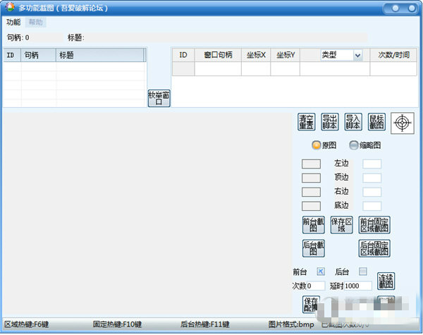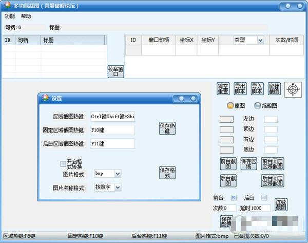 4、支持前台和伪后台截图。(伪后台:可被其他窗口遮挡,但是不能最小化)