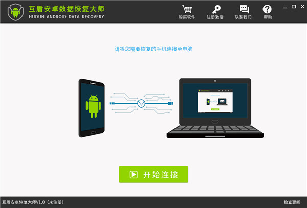 一、安装互盾安卓恢复大师,运行软件后,将手机连接到电脑上。