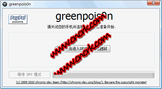 greenpois0n是一款ios 4.1越狱软件,用于越狱iPhone、iPod touch以及iPad的软件工具,由技术小组Chronic Dev Team开发并提供使用。目前针对苹果的最新的iOS 4.1操作系统,Chronic Dev Team本决定于美国时间10月10日10点10分推出他们的iOS 4.1越狱软件绿毒(greenpois0n)的最新版本。