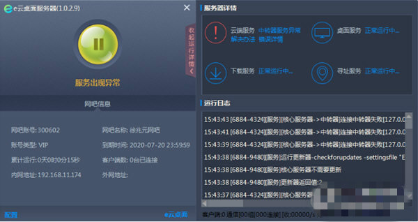 2.请检查e云桌面服务端,客户端是否正常运行;