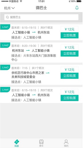点击下方菜单栏的”购票”,查询或选择需要购买的线路。