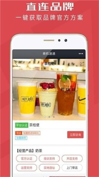 【发现商机】本平台覆盖了特色小吃、奶茶、咖啡、快餐、烧烤、麻辣烫、火锅等诸多网红餐茶饮品牌,包括新白鹿餐厅、一点点奶茶、蜜菓、喜茶、胖哥俩肉蟹煲等等耳熟能详的品牌加盟。