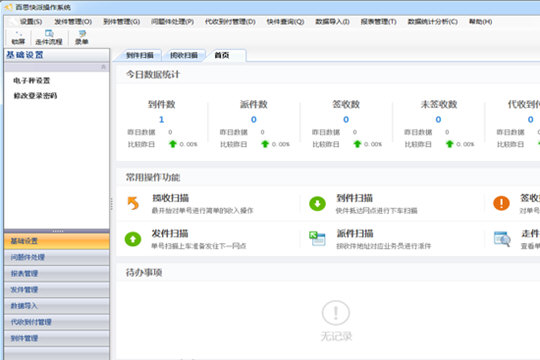 基础设置:包括电子秤设置、修改登录密码功能。问题件处理:包括问题件的受理、接收、处理、赔偿问题。