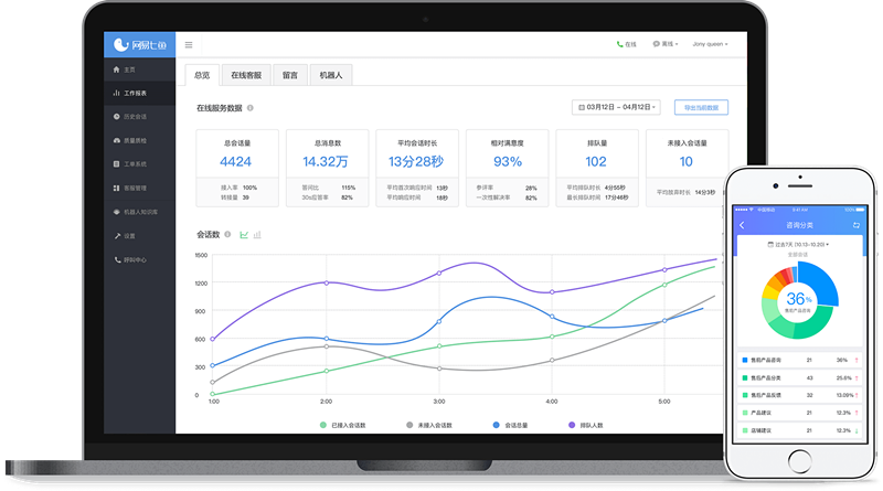 数据报表细致全面,现场状态随时掌握,合理调配人员,产品问题、客服绩效一目了然。