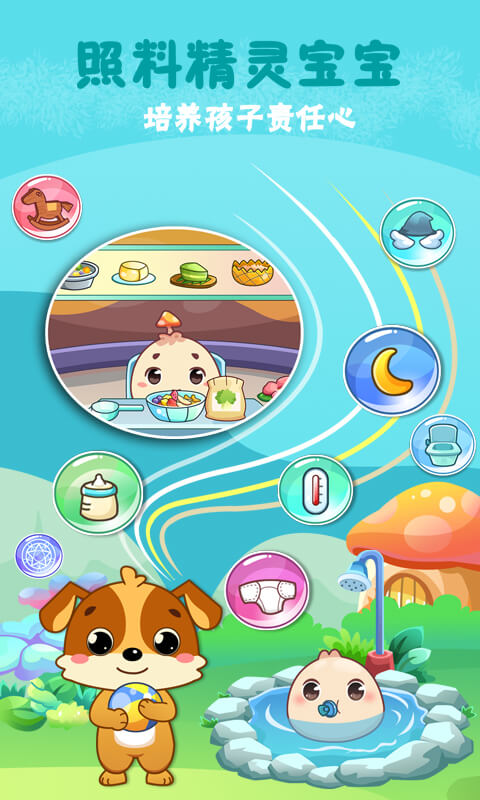 3、趣味的动画互动:小狗乐奇模拟宝宝玩伴,和宝宝分享小玩具,一起做运动,培养宝宝更多的兴趣爱好。