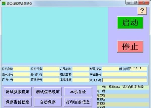 根据您设置的启动方式,启动对产品的测试,系统将根据你设置的测试参数对此产品进行检测,并在主界面实时显示测试的各项数据。其中“√”表示被测产品的此项测试合格,“×”表示被测产品的此项测试不合格。