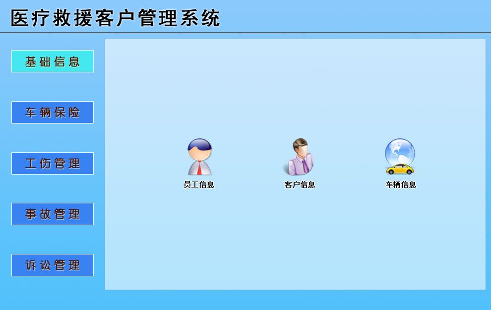 《医疗救援客户管理系统》是专门针对工伤、交通事故等客户的医疗救援管理开发的一款软件。该系统主要包含基础信息、车辆保险、工伤管理、事故管理、诉讼管理五大模块,信息录入详细,查询功能强大,让您操作简便、提高工作效率! 系统包含以下五大部分: 1.基础信息:员工信息、客户信息、车辆信息; 2.车辆保险:车辆保险、按车牌号查询、按车主姓名查询; 3.工伤管理:劳动能力等级、退休年龄、工伤信息、工伤理算; 4.事故管理:责任认定、icd项目、事故信息、医疗信息、材料收集、事故理算; 5.诉讼管理:保险调解、诉讼过程。 软件特点: 1.支持数据与execel的导出与导入; 2.数据处理功能强大; 3.信息管理方便简单。