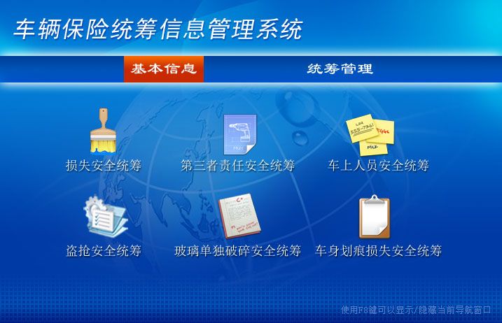 《车辆保险统筹信息管理系统》是专门管理单位车辆保险关于统筹信息的一款软件。系统主要包含基本信息、统筹管理两大模块,信息录入简单明了,查询统计功能强大,让您操作简便、提高工作效率! 系统包含以下两大部分: 1.基本信息:损失安全统筹、第三者责任安全统筹、车上人员安全统筹、盗抢安全统筹、玻璃单独破碎安全统筹、车身划痕损失安全统筹; 2.统筹管理:保单信息、车辆安全统筹补偿情况、车辆安全统筹费收缴情况;