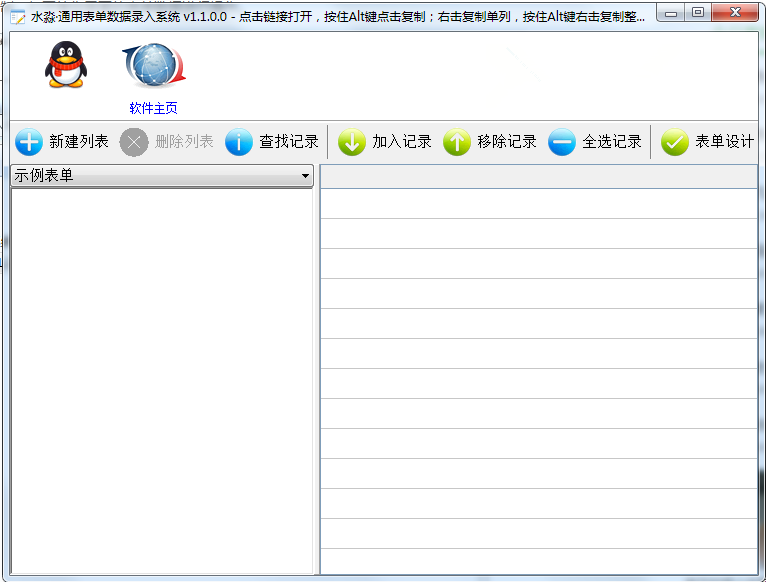 通用表单数据录入系统是一款通用数据录入(登记)系统,自己DIY设计录入模型(表单),可以快速查询 排序 复制 打开等,曾经为了某种具体数据录入需求(特定应用模型)而找人定制软件的时代过去了,这是一款可面向任何应用模型(应用领域)的数据录入的软件,可以自己设计一个表单(包含若干字段,字段即是数据列的定义),然后软件根据定义好的表单创建一个专属的录入模型,这时你就可以录入你的数据到列表里了。录完了数据,可以快速查找定位,单击数据列的顶部表头可以按各自的数据类型自动排序(升降序循环),鼠标右击某项数据列即可复制,链接型数据还能直接点击打开。【使用方法】