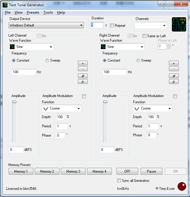 Test Tone Generator是一款小巧灵活且功能强大的煲耳机辅助程序,用户们可以通过这款软件使自己的电脑实时发生音频信号,为您的耳机提供优质的煲机效果,同时支持多种声卡,让您煲机更加方便。