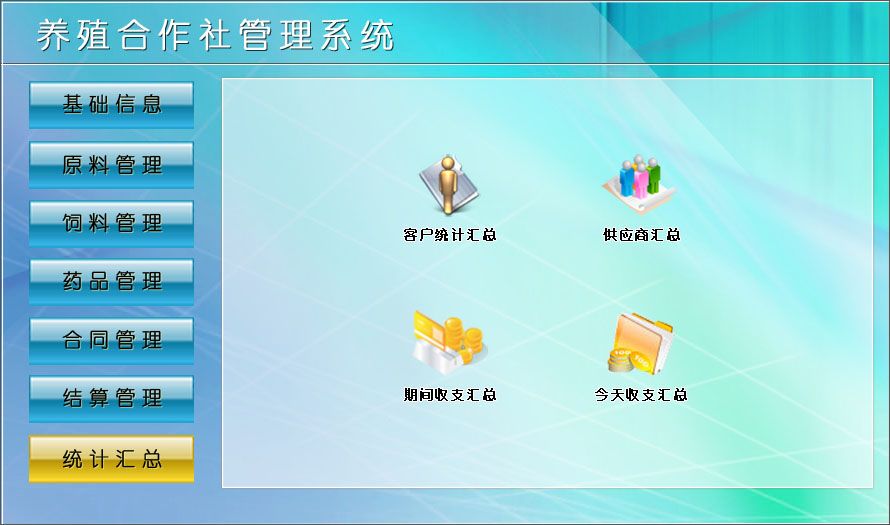 《养殖合作社管理系统》适用于中小型养殖合作社收费的管理软件。主要包含基础信息、原料管理、饲料管理、药品管理、合同管理、结算管理等功能。本管理系统多处具有快速辅助录入功能,操作简单,易学、易用;处理功能高效强大,是协助您的好帮手!