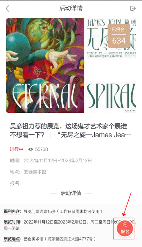 2. 进入活动界面后,点击右下角的“+报名”按钮。