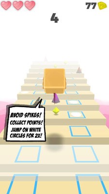 游戏主界面中我们会发现白天与黑夜两种难度模式,除了因地图光线而产生的视觉干扰之外,黑夜模式将在关卡进程前期便放出各种高难度陷阱——喷射伤害光线的发置器、布满尖刺左摇右摆的链球、盛满毒液的水池等。当然,天使与恶魔总会同时存在,游戏进展中,还将随机生成众多强力道具——无敌罩衣,吸金磁铁等。它们会帮助玩家不被陷阱虐成渣,跳得更高更远,实现小方块“再来一步”的初心愿望。值得一提的是,每次进入游戏所呈现的障碍与环境都是全新的,这将大大削弱重复闯关的乏味感,让玩家在《方块弹跳》中的每次挑战都是新鲜的。【软件特点】