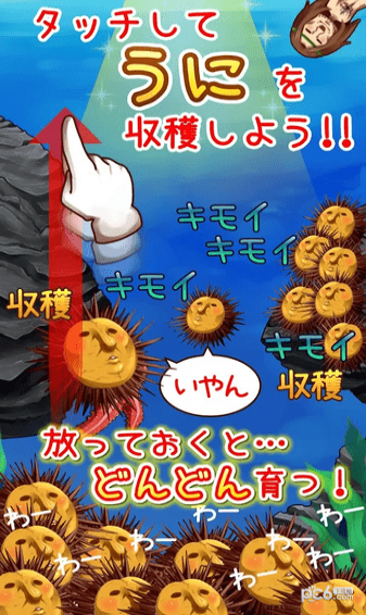 疯狂点击点击中央的能量槽,让海胆生长;只要在海胆长成后回收海胆即可。