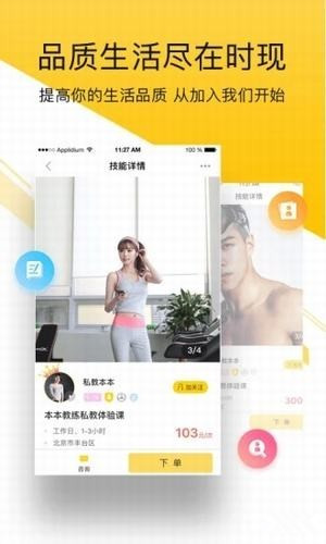 时现app致力于打造一个创新型时间技能共享交易平台。让你实现属于自己的品质生活,帮身怀绝技的你释放能量。这里有专业的健身视频,还有火辣的健身教练陪你减肥,你可以出租自己的闲时让时间变现,还能与健身、搏击、瑜伽等同样兴趣的小伙伴一起交流。