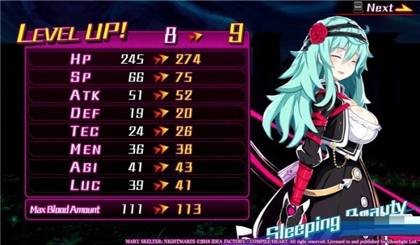 4.有些角色能够选择特殊的职业,比如“道具大师”,这个职业可以让她在战斗中使用各种道具。你也可以选择“诗人”职业,这个职业可以让角色在战斗在使用音乐来支援她的队友。一共有超过20种的职业可以选择,所以你可以创造出属于自己的血之少女队伍。