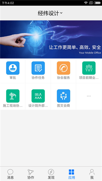 体验一体化的企业“互联网+”应用解决方案,助力企业的全方位升级和转型需要一个移动办公平台,灵活、轻量、按需选择企业管理应用,高效实现企业“管理效能升级”