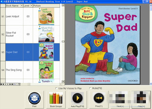 (1) 画面与音频同步视听,输入效率高,手动播放(Play)适合父母与孩子亲子学习,自动播放(Auto Play)适合吸引孩子、磨耳朵和自主欣赏学习;(2) 方便的Level(阅读级别)筛选功能,使父母迅速地筛选出适合孩子阅读能力的读物;